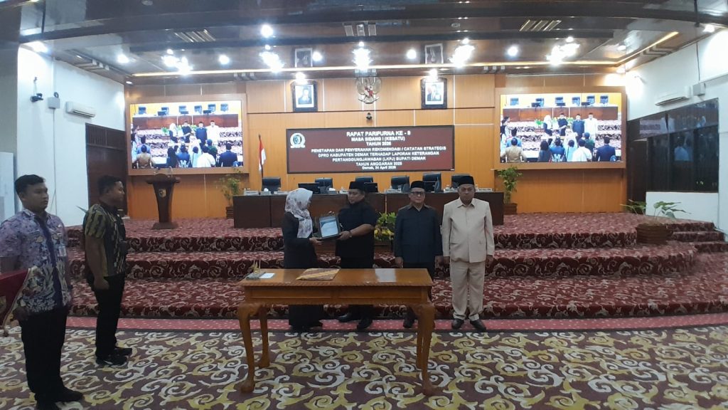 “Kami sampaikan terima kasih dan penghargaan setinggi-tingginya kepada pimpinan dan segenap anggota DPRD Kabupaten Demak,” ujarnya.